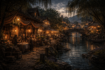 The hearth burns low. Shadows dance against timbered walls.